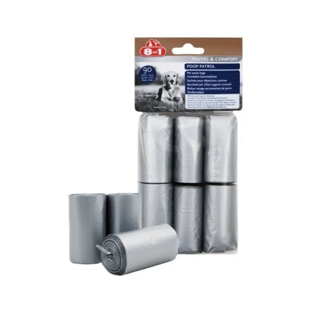 8in1 Poop Patrol bags are tear proof bags for dog poop which come in a handy dispenser. They are perfect when on the move, making it easier for you to dispose of your dog’s poop properly while out walking or on a journey and to keep the environment clean for people and animals. The dispenser guarantees one bag at a time, is fitted with an adjustable rubber strap and fits to any lead. The reflectors on both sides also offer additional protection when walking in the dark.