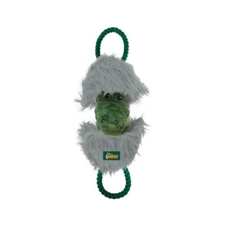If you’re looking for a tug toy, this Leave Me Alone Gator is the one for you. The rope handles allow for tug fun between you and your dog or between two dogs and as the toy is tugged the alligator is exposed. The toy also squeaks when pulled, which entices the dog to play more and the variety of textures and materials creates excitement.