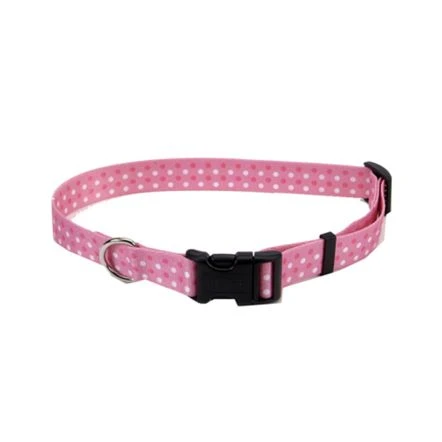Made from high quality nylon that is specially processed to prevent fraying, and increase the overall strength. All nylon products are carefully, and neatly finished for comfort, appeal, and durability. Adorable design for added detail, and style. Adjusts 18″-26″ Pink dot pattern Sublimated pattern printed on both side.