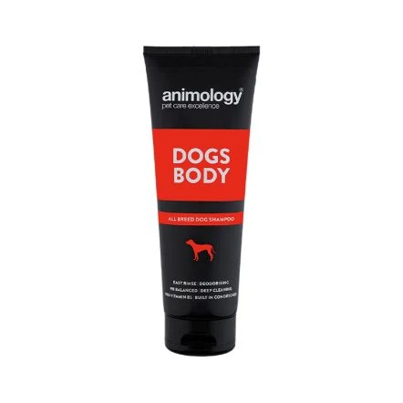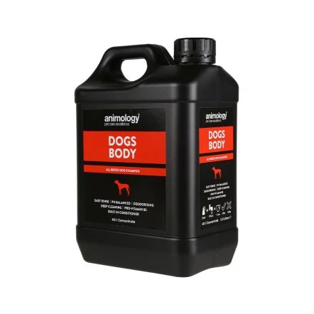 Dogs Body shampoo is an all-breed dog shampoo suitable for cleaning, deodorising and conditioning. With built in conditioner and pro-vitamin B5, Dogs Body helps to keep your dog’s coat beautifully clean and healthy. Dogs Body can be used on all coat and skin types including sensitive skin, and is suitable for all dogs from 6 weeks old. All Animology dog shampoos have a mild yet deep cleaning action that removes dirt and odour without stripping the coat of its essential oils. Our ‘easy rinse’ formulation keeps washing time to a minimum, while the built-in conditioner and Pro-Vitamin B5 help to improve the health, strength and condition of your dog’s coat.