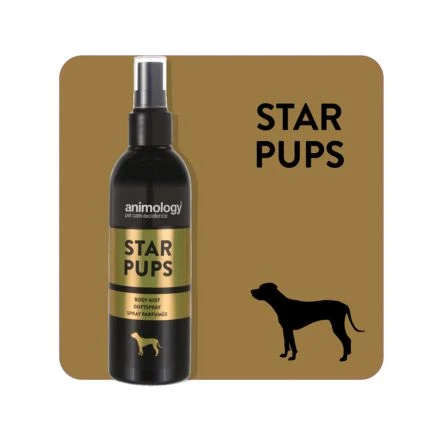 Star Pups, by Animology, is a fragrance body mist for dogs with long lasting notes of soft and gentle Shea and Vanilla.