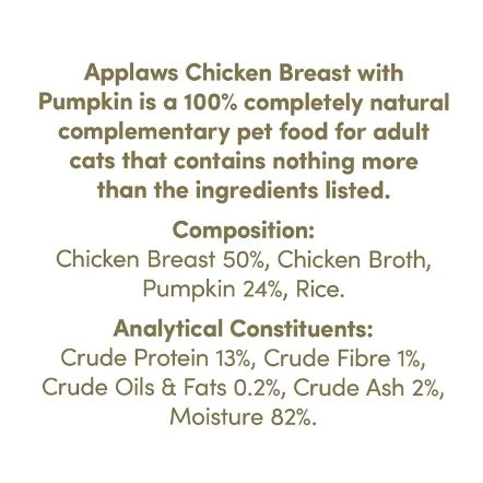 Applaws is a complementary pet food for adult cats, feed alongside a complete wet or dry cat food including Applaws complete dry cat food, for a balanced diet. This product is intended for intermittent or supplementary feeding only.