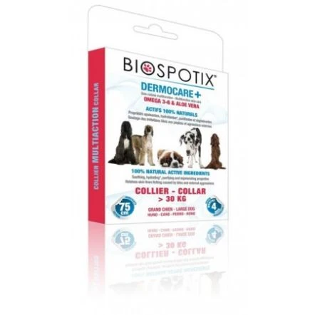 Dermocare + skin care products are formulated from Aloe Vera, Muscat Rose Oil and a complex of Essential Oils (Citronella, Lavender, Tea Tree, Pine, Geranium, Rosemary, Eucalyptus) for their soothing properties , hydrating *, purifying and regenerating. Very practical, the Dermocare + collar can be used to reinforce the action of the pipettes. Attached to the animal’s neck, it diffuses its active ingredients over the entire body thanks to the sebum. Dermocare + skin care products contain Omega 3 and 6, which are essential for the body.