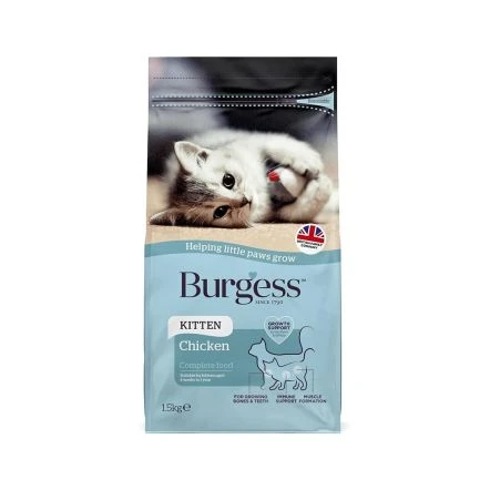 Burgess Kitten food is made using premium ingredients to ensure excellent quality and superior taste. We use British protein sources combined with healthy cereals, natural antioxidants, and essential nutrients to help keep your kitten happy and healthy. Burgess Kitten with Chicken is a complete food suitable for kittens up to one year of age and pregnant or nursing mothers.