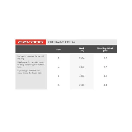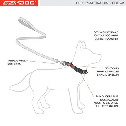 The Checkmate is made from our EzyDog soft and durable nylon so is comfortable around your dog’s neck. The webbing is also reflective for those late night training sessions. The EzyDog Checkmate Collar is a Martingale (Martingale is a type of dog collar that provides more control over your dog without that choking effect of a slip collar. ) style correction collar that does not require the act of re-sizing for each fitting – So with all the time you just saved, you can spend it correcting any unwanted behaviour!