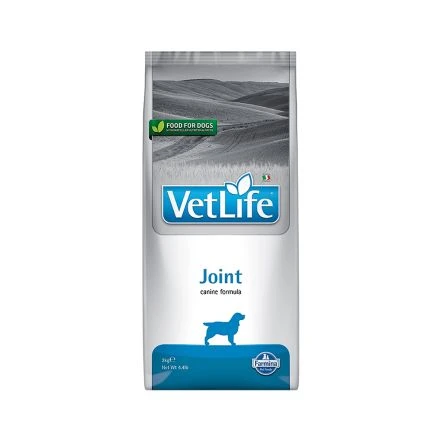 Farmina Vet Life Joint is a complete dietary food for adult dogs that assists in the treatment of osteoarticular tissue inflammation. Mode of action: Constituents of cartilage (glucosamine and chondroitin sulfate) promote the reconstruction of cartilage tissue. The simultaneous presence of anti-inflammatory nutrients (EPA and DHA) and of antioxidant substances, assists in drug therapy for joint pain. Treatment modalities: It is recommended that a veterinarian’s opinion be sought before use and before extending the period of use. Serve the product as it is, following the daily quantity indicated in the table. The daily quantities can change according to breed, environment, physical exercise and temperament. The quantities shown in the table are purely indicative and require an adjustment to obtain optimal weight. The dose can be divided into two daily meals or more. Always leave a clean bowl of fresh water throughout the day in order to hydrate the animal as much as possible.