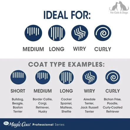 - Ideal for medium, long, curly, and wiry coat types. Also great for grooming cats!