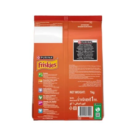 FRISKIES Adult Meaty Grills Dry Cat Food provides grillicious morsels of flavours including chicken, beef, turkey, lamb & vegetables. Think of it as an amusement park ride for your cat’s taste buds. FRISKIES Adult Meaty Grills provides your cat a complete & balanced nutrition, contains protein, essential fatty acids with Omega 3 and 6, antioxidants, taurine and calcium to meet your cat’s daily nutrition needs.