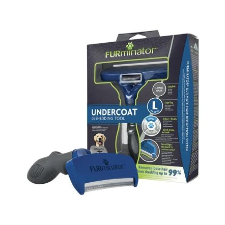 By reducing shedding up to 90%, the FURminator deShedding Tool enables you to share your home with your dog, without surrendering it to his hair. The NEW Long Hair deShedding Tool for Large Dogs is specially designed for dogs that are less than 51-90 pounds with hair that is longer than 2 inches. The long hair stainless steel edge reaches deep beneath your dog?s long topcoat to safely remove undercoat and loose hair. The FURejector value cleans and removes loose hair from the tool with ease.