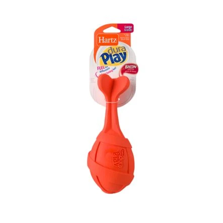 Feel the difference with Dura Play natural latex dog toys. Each toy provides long lasting fun with a unique foam technology that enhances durability, creating an unmatched chew experience. Now with an enticing bacon scent! Fun to throw and bounce, Dura Play toys even float. Soft and flexible to the touch and perfect for dogs of all ages, even senior dogs, and teething puppies.