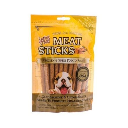 Loving Pets Meat Sticks are all natural, healthy and delicious chew treats for small and senior dogs. These soft chew sticks are made with no chemical additives, by-products or fillers and contain glucosamine & chondroitin to promote healthy joints. Loving Pets Meat Sticks are 100% natural and feature real chicken with added sweet potato for extra softness, meaning they go easy on your small or elderly dog’s teeth and gums.