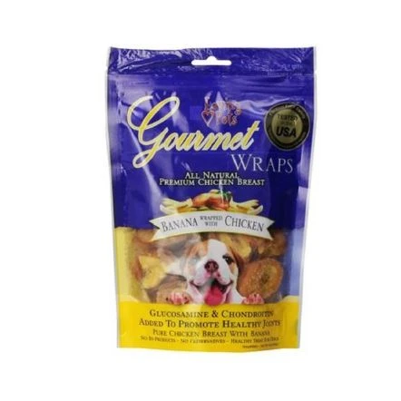Now, health-conscious pet owners can give their pampered pet a treat that has both the protein and nutrients of 100% pure chicken and the vitamins of fresh fruits and vegetables. Loving Pets Gourmet Meat Wraps are 100% pure chicken filets wrapped around apple, carrot, banana or sweet potato. Our wraps are all natural – no chemical additives, fillers or by-products. All of our Gourmet treats contain glucosamine & chondroitin to help keep your dog’s joints happy and healthy. Your dog will go crazy for these treats!