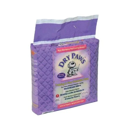 Dry Paws Training pads are constructed of a super absorbent polymer and quilted to quickly lock away moisture and bacteria keeping your pet healthy and floors clean. The Dry Paws Training pads are a great tool for house breaking a new puppy and designed to provide your pet with a place to eliminate during those times when you are not available to let them out. Dry Paws Training pads are not just for our new friends, they are also perfect alternative for our older pets that may have a hard time making it outside or are just unable to hold on long enough. Also a great alternative for pet parents that live in apartments or homes with limited outdoor areas.