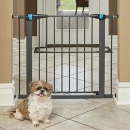 Midwest Steel Glow Stripe Pet Gate, Graphite has a strong and durable steel frame construction. Allows you to set boundaries safely and keep pets in a good place! Easy to use, safe and secure spring loaded latches