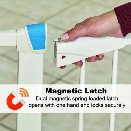 - Dual magnetic, spring-loaded latch securely locks door