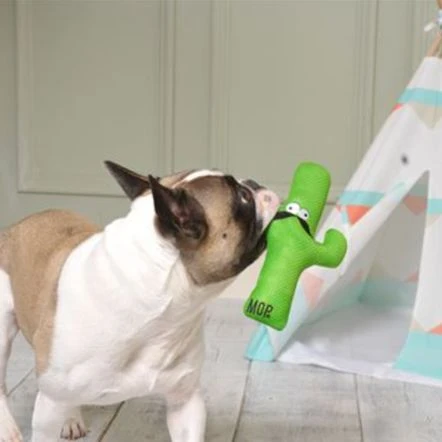 Carlos the Cactus has an inner rope skeleton to make her the perfect toy for dogs that love to chew. Containing an inner squeak the internal cross structure is guaranteed to stimulate your pet’s natural play instinct. The outer fabric is not only extremely durable but cleans teeth and soothes your dogs gums.