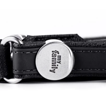 Dog leash of the Bilbao collection in fine crafted black leatherette and rope with antique silver finishing.