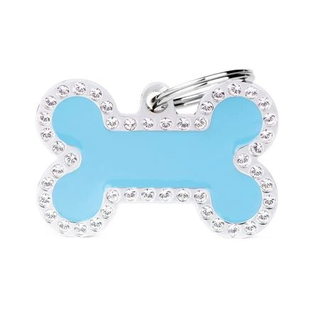 - Glam Big Light Blue Bone Strass Pet ID Tag