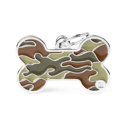 Bold like few, the Style Camouflage Green Bone ID Tag represents one of the most influential textures in the world of fashion. Enriched by the MyFamily logo, it is completely hand-finished in Italy. Customizable on the back with an easily legible and durable engraving. Equipped with a practical ring to attach it to the Tag-holder.