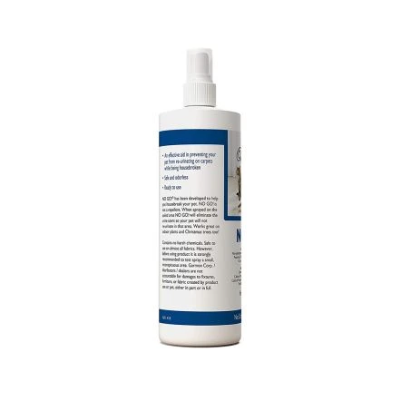 This Spray has been developed to help you housebreak your pet. No Go! is not a repellent. When sprayed on the soiled area, No Go! will eliminate the urine scent so your pet will not re-urinate in that area. Works great on indoor plants and Christmas Trees too! No Go! contains no harsh chemicals. Safe to use on almost all fabrics, however, before using product test on small inconspicuous area of surface.