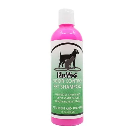 Odor Control Pet Shampoo – Unpleasant odors are a thing of the past; even eliminates persistent odors like skunk. NuVet Odor Control Pet Shampoo is formulated with a proprietary mixture of odor removers and odor counteractants. This coconut based shampoo is a unique blend of almond oil, vitamins A, E, C, cherry and floral extracts and infused with coat conditioners and skin moisturizers.