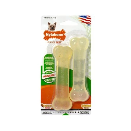 Flexi Chew Chicken/Flexi Chew Original Twin Pack Petite: Made from inert soft thermoplastic polymer designed to satisfy the chewing instinct of moderate chewers. Bristles raised during chewing will help clean teeth and prevent tartar build up