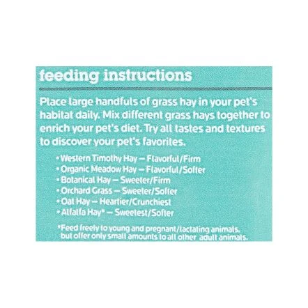 Place large handfuls of grass hay in your pet’s habitat daily. Mix different grass hays together to enrich your pet’s diet.bTry all tastes and textures to discover your pet’s favorites.