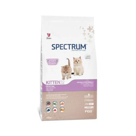 Spectrum Starter32 Ultra-Premium Kitten Food. Specially formulated complete and balanced ultra-premium food to meet the nutritional requirements of kittens (4 to 16 weeks of age) and queens during gestation and lactation.