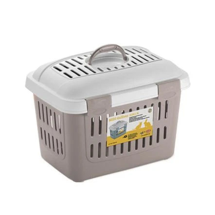 Midi Gulliver is a handy and versatile carrier ideal for small sized dogs, cats or rodents. It is provided with a practical handle and an upper lid that can be opened. The numerous holes on the lid and on the sides guarantee a correct inside aeration.