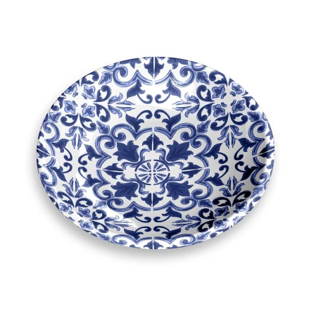 - Ornate design in blue and white