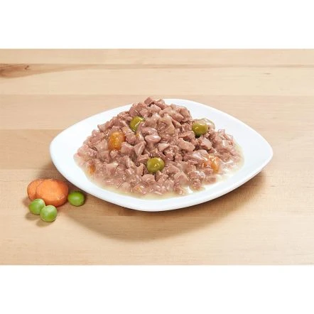 2 x chicken and garden vegetables, 2 x beef and carrot, 2 x turkey in cheese sauce Recipes without sugar No artificial colors or preservatives 6 heart dishes 85 g Chicken and garden vegetables: meat and meat meat byproducts, vegetables (2% carrots, 2% peas) grains (wheat) minerals from the milk and dairy products of inulin + turkey in cheese sauce. meat u animal by-products, Cereals (wheat) Minerals Milk and dairy products (2% cheese) Inulin. + Beef and carrot: meat and vegetables. animal by-products, vegetables (4% carrots) cereals (wheat) minerals inulin